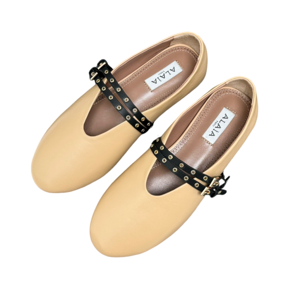 【ALAIA】Ballet Flats - Leather/Mesh Crossover Strap, Anti-Slip Sole & Lambskin Lining