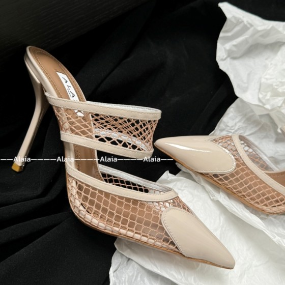 【ALAIA】Heart Mesh Pointed-Toe Heels | Breathable Design | Lightweight Non-Slip Sole