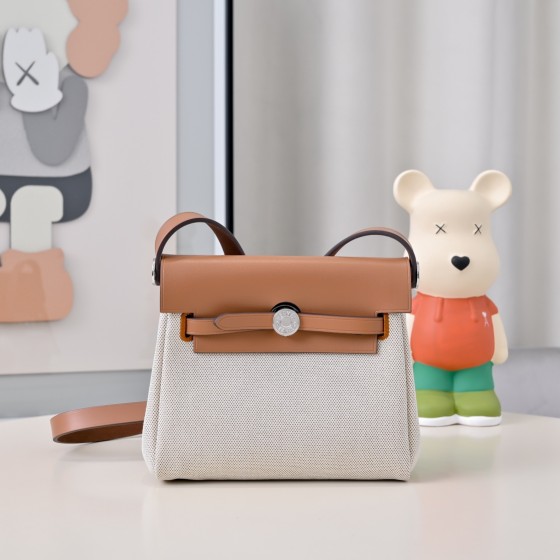 【Hermès】🐎 Inspired Mini Herbag 20cm Kelly Bag | Limited Edition Leather-Canvas Silver Hardware