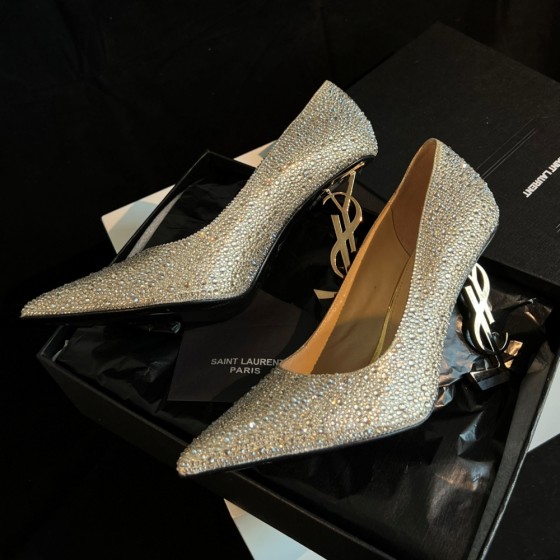 【Saint.Laurent】Classic pointed high heels 10.5cm YSL letter heel design | Custom imported Czech diamond inlaid upper