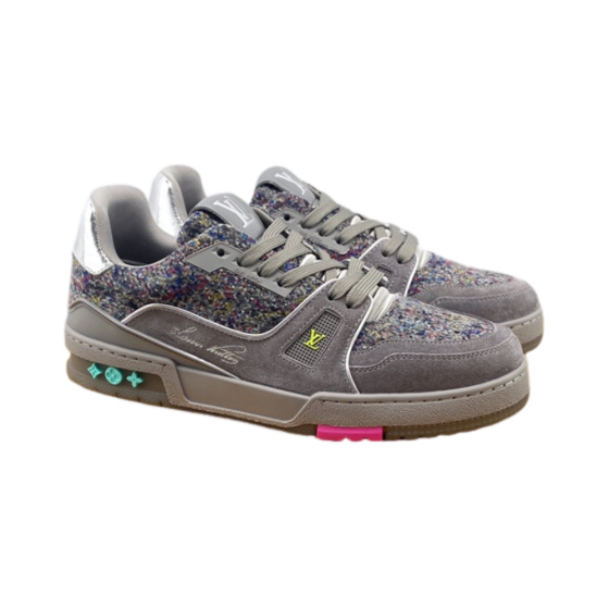 Female style【 LV Trainer 】 Original Last | Customized embossed calf leather | TPU outsole | Poly Mi micro material footrests | Breathable mesh fabric | Texture comparable to the original
