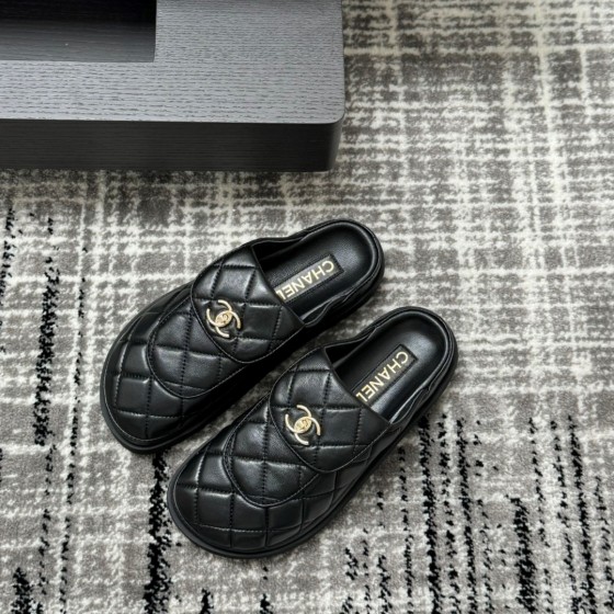 CHANEL Birken-Inspired Platform Slippers | Gold-Black Lambskin with Leather Sole, 5CM Cloud Cushion for Indoor/Outdoor