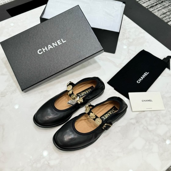 CHANEL 24A Coin-Embellished Mary Janes | Vintage Ballet Flats with Gold Charm Straps, Lambskin Sweet-Cool Style Shoes