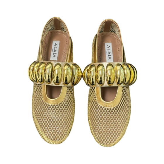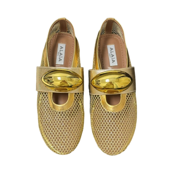 【ALAIA】Ballet Flats with Metal Buckle | Airy Mesh Upper | Lambskin Lining & Non-Slip Base