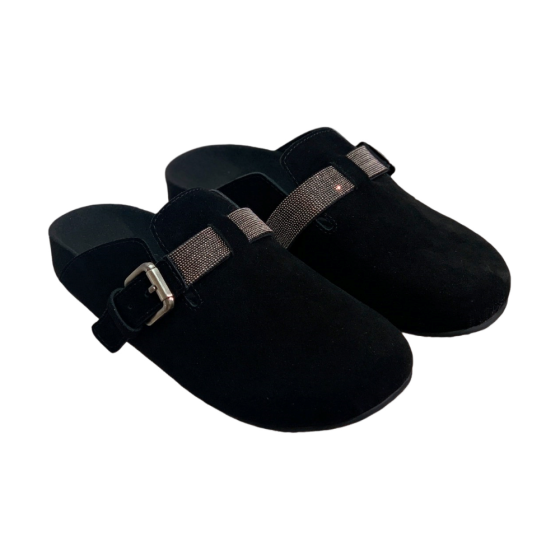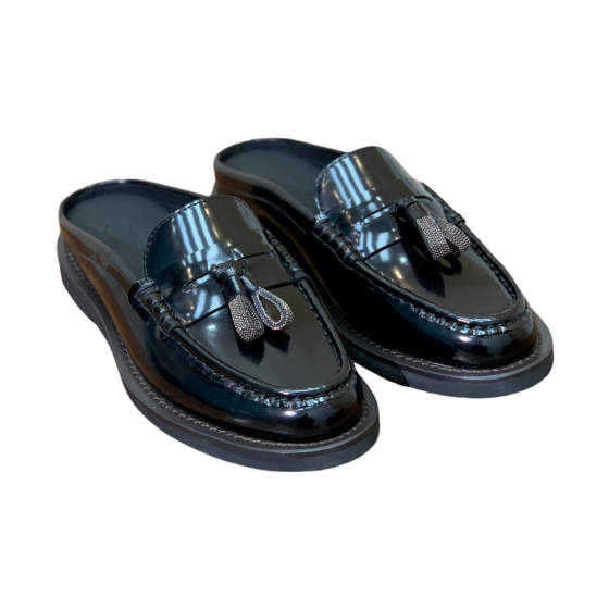 Women's Brunello Cucinelli Half Pack Slippers | Imported Environmentally Friendly Cow Fleece | Handmade Bead Chain | Rubber outsole | Simple and luxurious