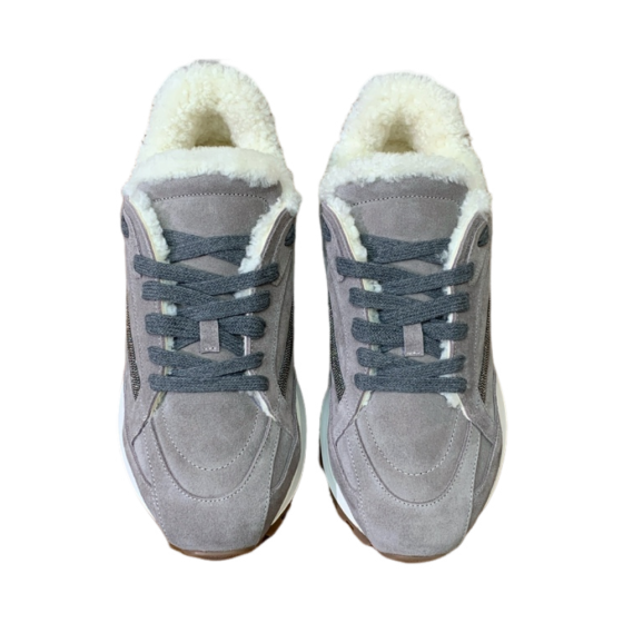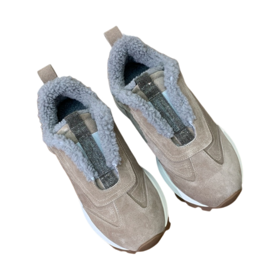 Women's Brunello Cucinelli wool lined casual sports shoes | Imported cowhide upper | Wool lining | Original outsole | Comfortable and warm