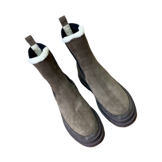 Women's Brunello Cucinelli short boots | Cow suede upper | Wool lining | Original hardware | Rubber outsole | Warm and comfortable