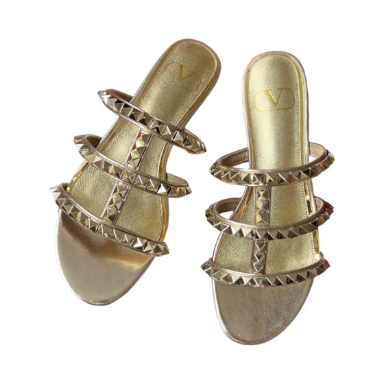 【VALENTINO】古铜色铆钉设计平底鞋 进口牛皮材质/真皮大底