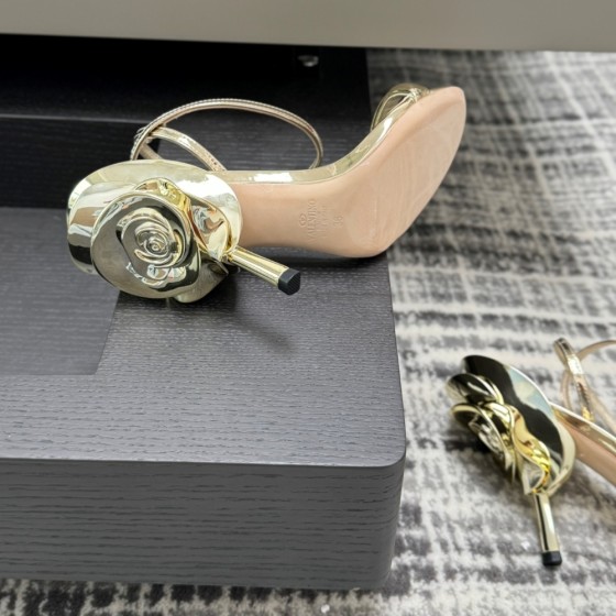 【VALENTINO】玫瑰花朵凉鞋 10cm细高跟 | 进口胎牛皮面料/羊皮透气内里 | 牛皮耐磨鞋底 极简主义设计