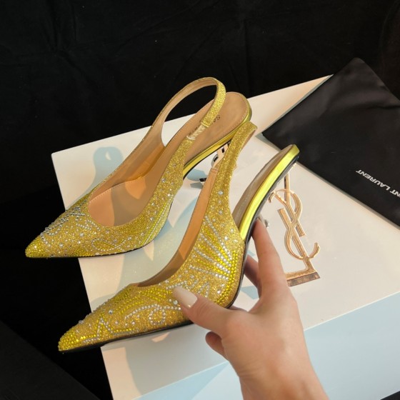 【Saint.Laurent】Classic pointed high heels 10.5cm YSL letter heel design | Custom imported Czech diamond inlaid upper
