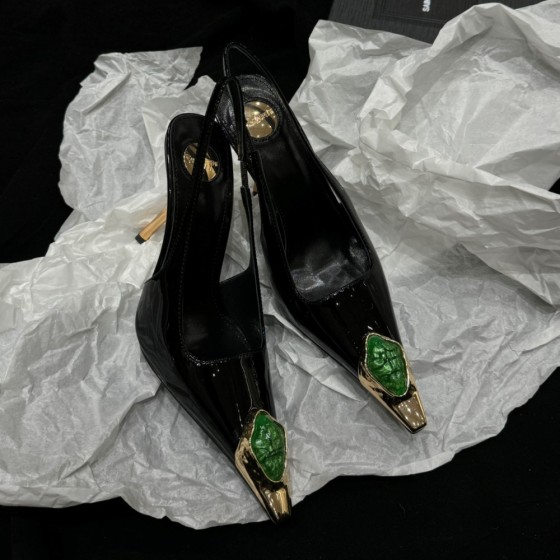 【Saint.Laurent】Slingback Stiletto 10.5cm - Gemstone Metal Toe, Calfskin & Lambskin