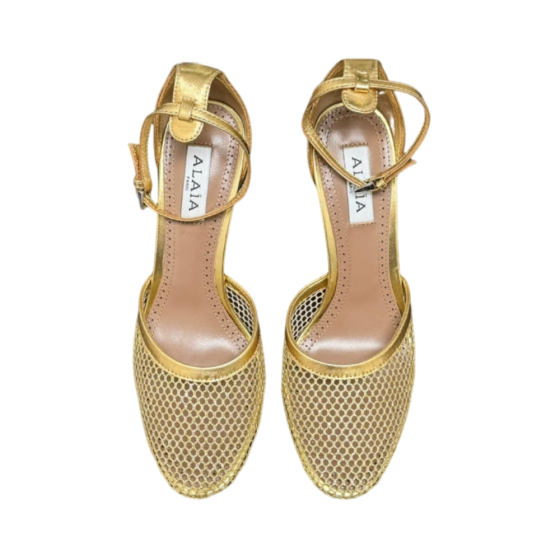 【ALAIA】Ballet Flats - Leather/Mesh Crossover Strap, Anti-Slip Sole & Lambskin Lining