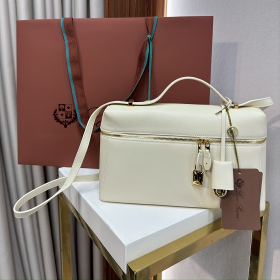 【Loro Piana】🔥Extra Bag 27 | Geometric Calfskin Tote | Detachable Charms & Adjustable Strap