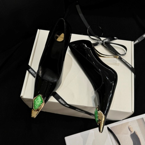 【Saint.Laurent】Classic pointed high heels 10.5cm YSL letter heel design | Custom imported Czech diamond inlaid upper
