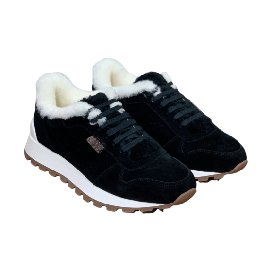 Women's Brunello Cucinelli wool lined casual sports shoes | Imported cowhide upper | Wool lining | Original outsole | Comfortable and warm