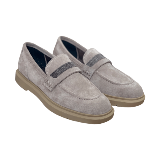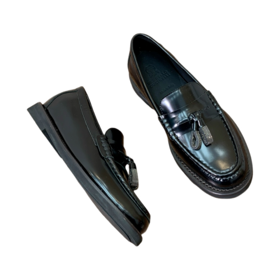Women's Brunello Cucinelli loafers | Embroidered pearl cowhide upper | Sheepskin lining | Classic elegance | Modern style