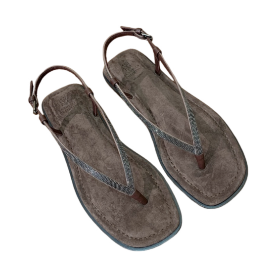 Women's Brunello Cucinelli Toe Sandals | Yangjing Leather Upper | Handmade Bead Chain | Genuine Leather outsole | Simple and Luxurious
