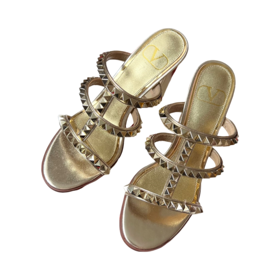 【VALENTINO】春夏新款8cm细高跟凉拖鞋 | 进口珠光真皮防滑大底