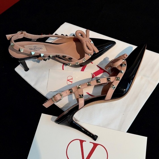 【VALENTINO】ROCKSTUD铆钉皮蝴蝶结凉鞋 | 漆皮细高跟单鞋 意大利真皮大底+羊皮亲肤内里