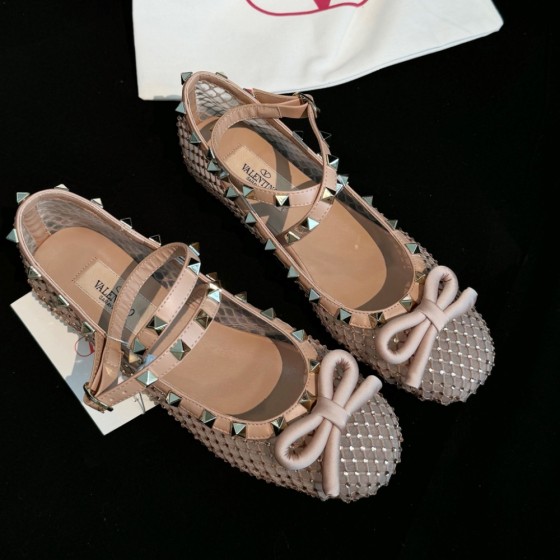 【VALENTINO】ROCKSTUD仿水晶网格芭蕾平底鞋 | 铆钉+水晶网格装饰设计 羊皮亲肤内里/意大利真皮大底