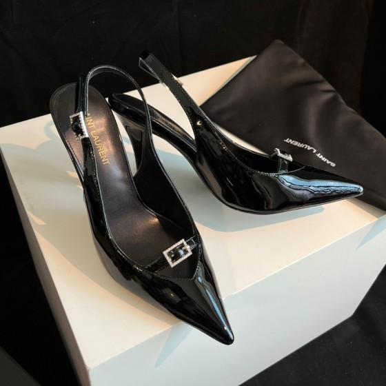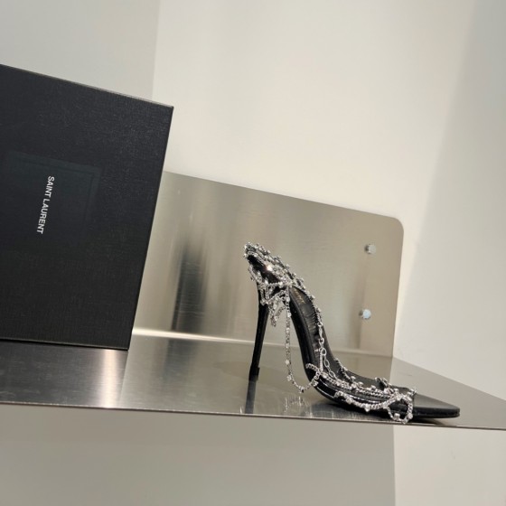【Saint.Laurent】Classic pointed high heels 10.5cm YSL letter heel design | Custom imported Czech diamond inlaid upper