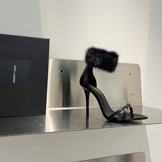【Saint.Laurent】2023 Mink Fur Heels 10cm - Custom Mink Trim, Lambskin Lining & Leather Sole