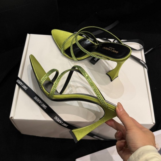 【Saint.Laurent】Crystal Sandals 11.5cm - Silk Fabric, Lambskin Lining & Italian Leather Sole