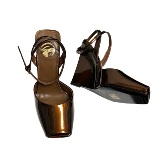 【Saint.Laurent】Peep-Toe Wedge Sandals 11cm - Calf Leather/Silk, Lambskin Lining & Italian Leather Sole